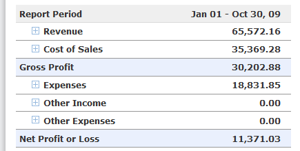 Many business owners use the Income Statement (Profit and Loss) to manage their business because it gives a clear view of what they are earning, what it costs to sell their goods and services and what they are spending. The Net Income line item at the bottom of the report tells you if you are making a profit (positive net income) or incurring a loss (negative net income). In addition to tracking profit, you can use the Income Statement (Profit and Loss) to spot trends in how your money is coming in, whether it is driven by season, product line or strategic marketing events and how your money is going out so you can budget for the future.